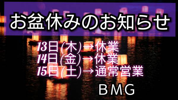 ~お盆休みのお知らせ~ いつも当店をご愛好下さいまして誠...